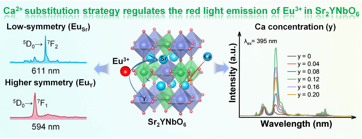 相关工作“Site-selective luminescence in Ca-doped Sr2YNbO6:Eu3+ phosphors for high-color-purity red emission”发表在Journal of Colloid and Interface Science(DOI: 10.1016/j.jcis.2025.139616)上。智能材料与工程研究院博士生杨成祥为该论文第一作者,蒋绪川教授和刘威老师为共同通讯作者。